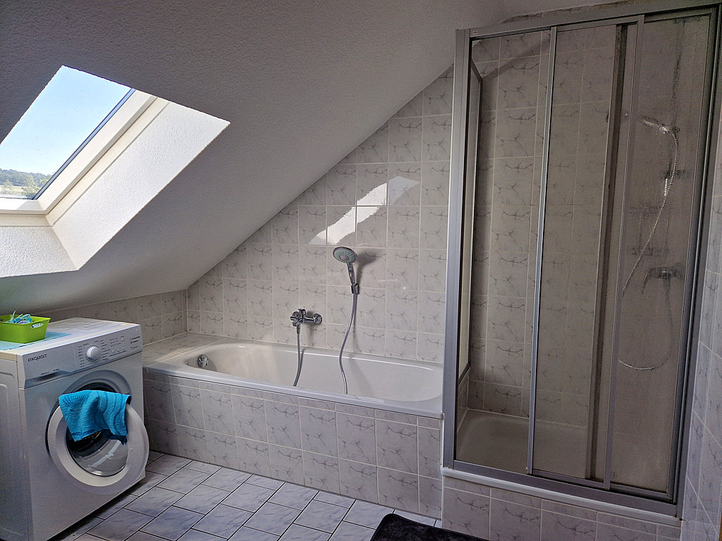 Unsere Ferienwohnung befindet sich im 1. Stock unseres im Jahre 1996 erbauten Hauses. Sie hat eine Größe von ca. 85 m² und ist für maximal 4 Personen bewohnbar. Sie verfügt über zwei separate Schlafzimmer mit jeweils einem großen Doppelbett. (Bettwäsche und Handtücher werden bereitgestellt.)